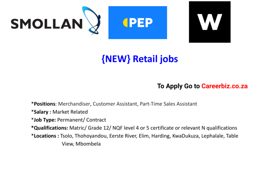 Job Title: Merchandiser Locations: Start Date: ASAPWorking Hours: 9 hours per shift, 5 shifts per weekSalary: To Be Confirmed (TBC) Cost to company Requirements: Responsibilities: Job Title: Customer Assistant – (Multi-Skilled role) Location: Thohoyandou-J, Thohoyandou – Thavhani Mall Start Date: ASAPWorking Hours: 7 hours per shift, 4 shifts per weekSalary: To Be Confirmed (TBC) Cost … Continue reading February Retail Jobs