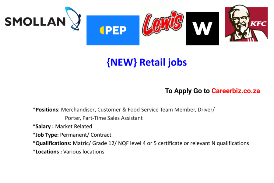 Job Title: Merchandiser Locations: Start Date: ASAPWorking Hours: 9 hours per shift, 5 shifts per weekSalary: To Be Confirmed (TBC) Cost to company Requirements: Responsibilities: Job Title: Customer Service Team Member Location: Voorbaai, Die Voor Bay, Western Cape Start Date: ASAPWorking Hours: 9 hours per shift, 6 shifts per weekSalary: To Be Confirmed (TBC) per … Continue reading {New} Retail jobs